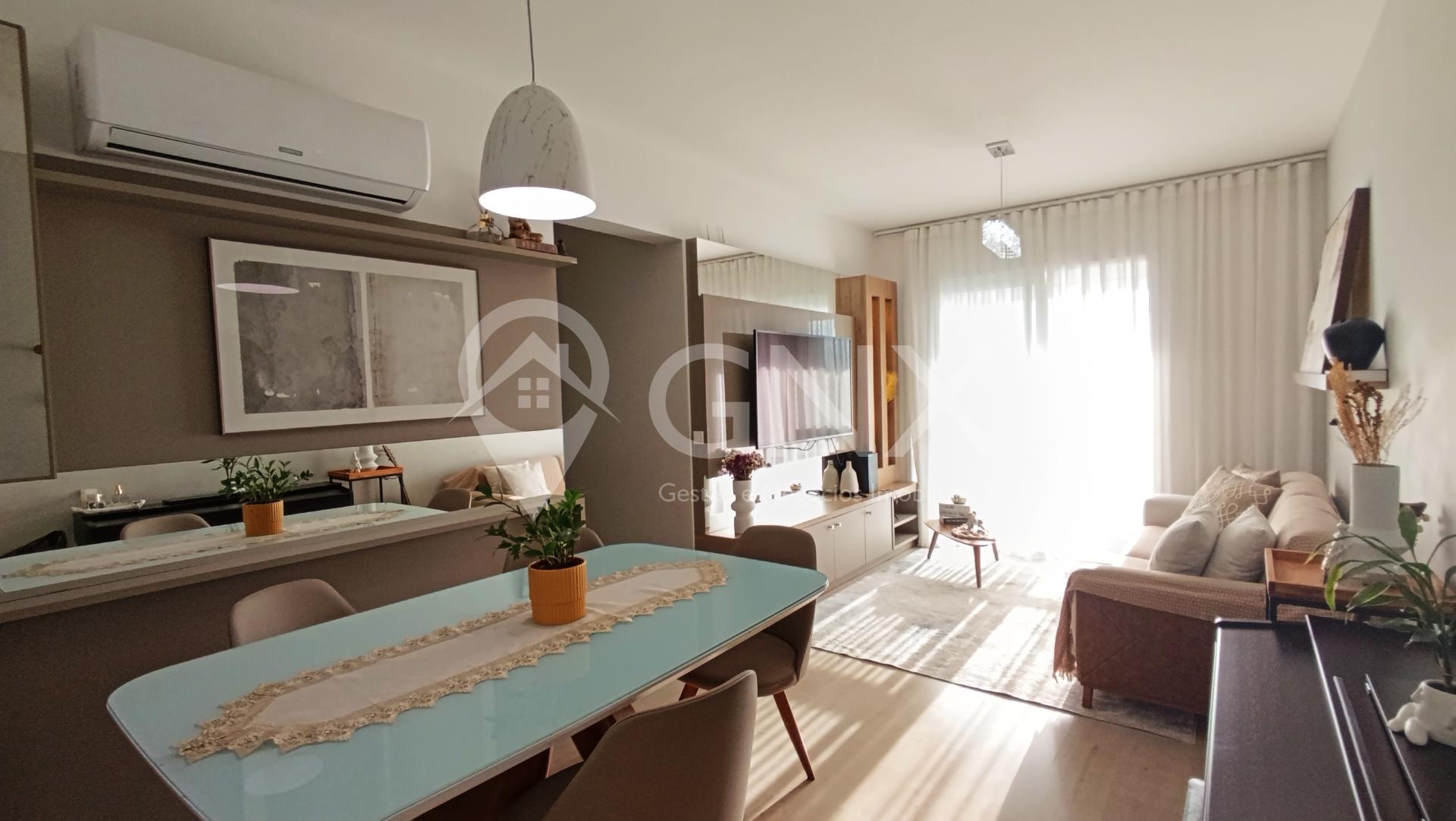 Excelente apartamento Semi-Mobiliado 3 dormitórios sendo uma suíte. Sacada com churrasqueira. Sala integrada com cozinha. 2 vagas de garagem. Prédio com Salão de festa, Espaço KIDS, Piscina.