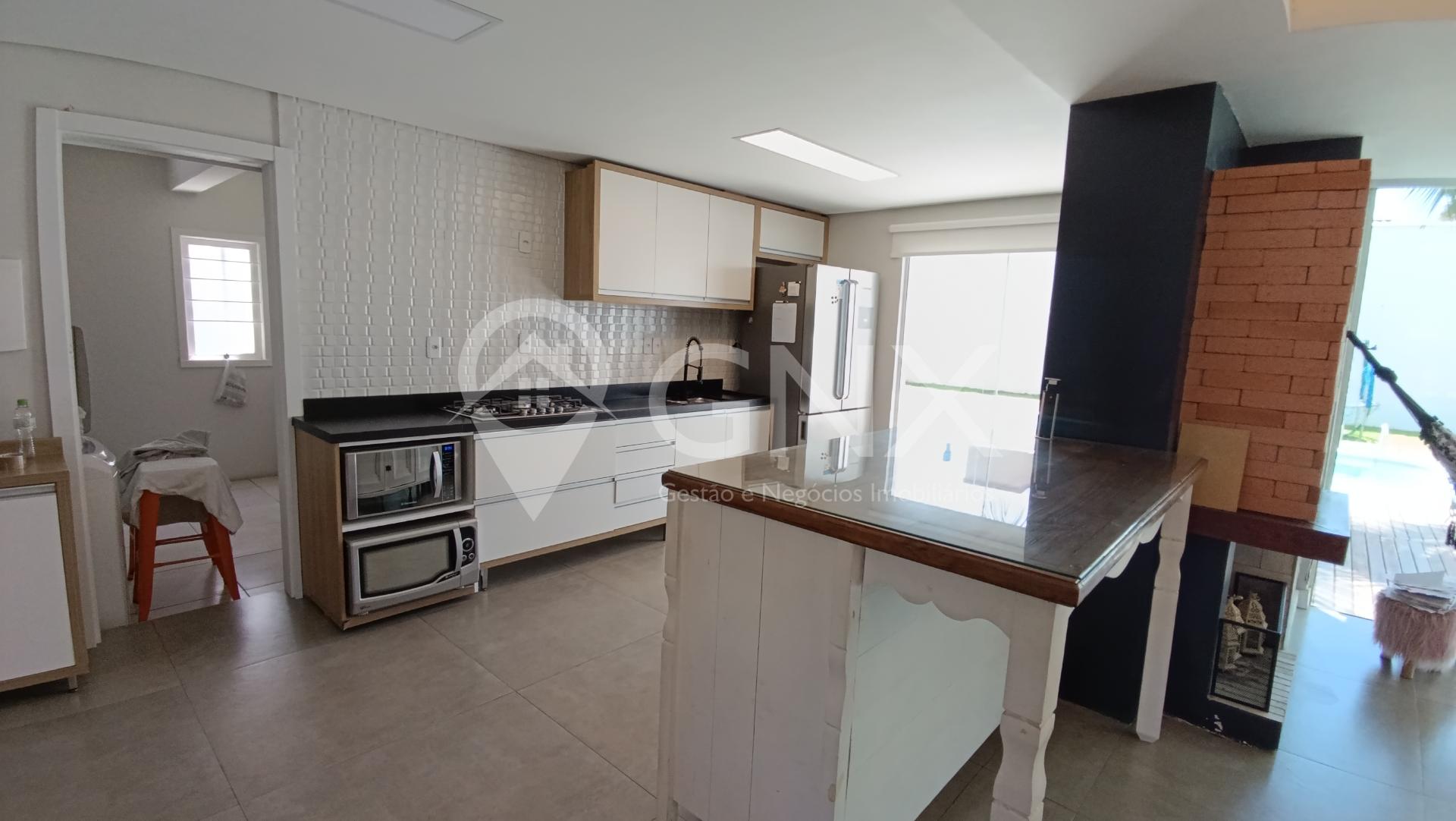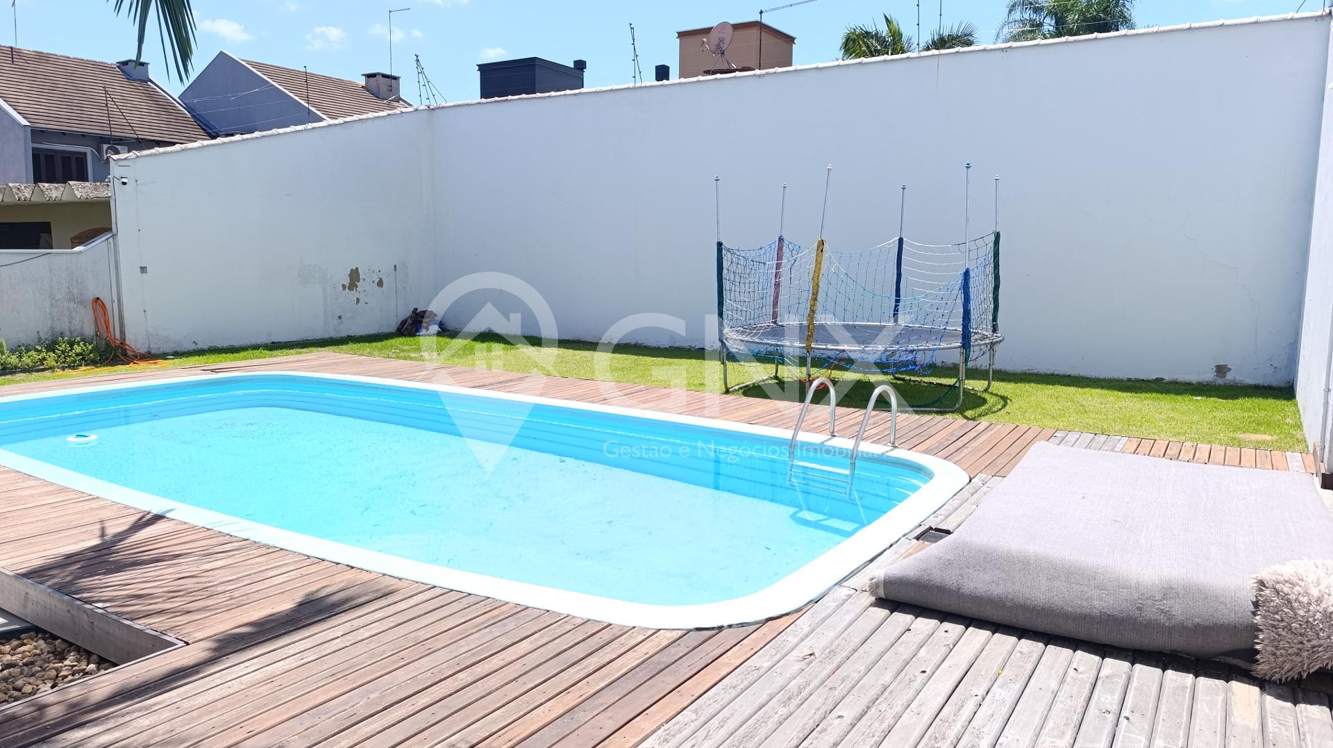 Casa com 4 dormitórios, sendo 1 suíte com closet, sala de estar ampla, cozinha integrada com churrasqueira, pátio com piscina.